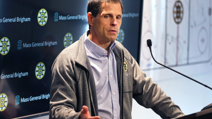 Boston, MA - September 20: Boston Bruins General Manager Don Sweeney speaks with the media. (Photo by John Tlumacki/The Boston Globe via Getty Images)